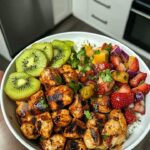 Garlic Cilantro Chicken Bites with Kiwi Strawberry Salsa