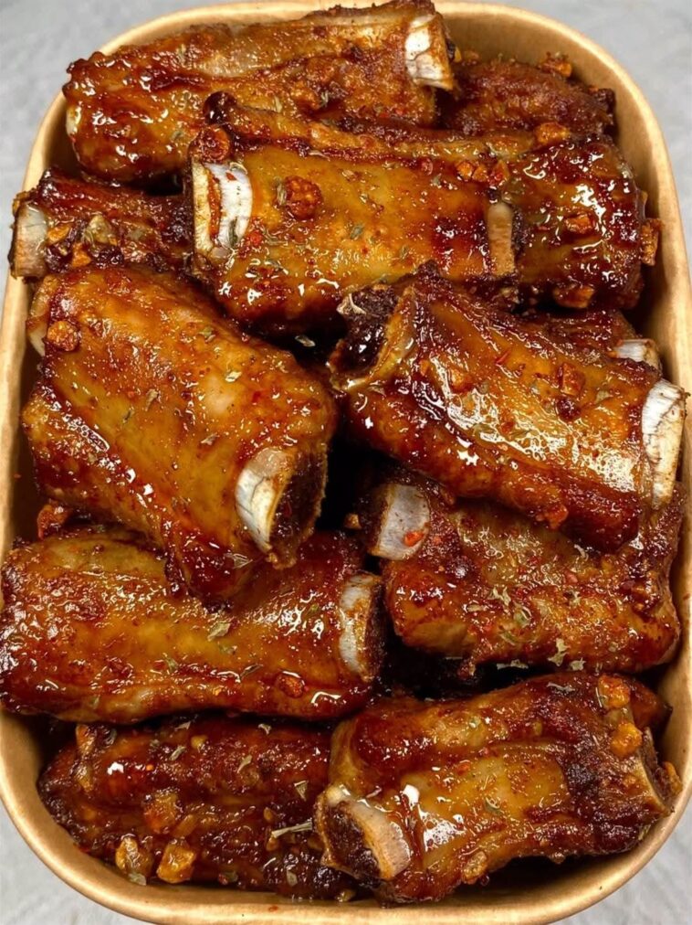 Beat an egg in a bowl, stir well, and evenly coat the marinated ribs with egg liquid. – Put the ribs coated with egg liquid into the starch and evenly coat them with a layer of starch.